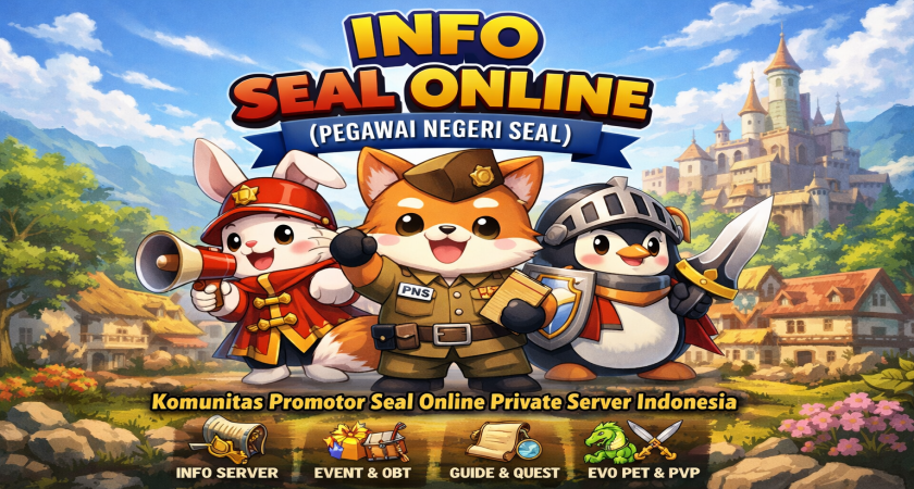 Komunitas INFO SEAL ONLINE (PEGAWAI NEGERI SEAL) hadir sebagai wadah untuk menyatukan pemain dari berbagai server privat Seal Online, sekaligus menjadi pusat penyebaran informasi yang relevan, aktual, dan mudah dipahami oleh pemain baru maupun veteran.